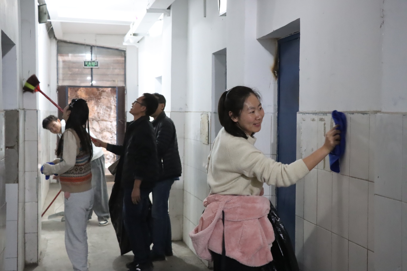 本次义务劳动以社团活动中心大楼的公共区域为主阵地,党员同志们手持扫帚、抹布、拖把等工具,迅速投入劳动。大家分工明确,配合默契,对楼内的走廊、楼梯间、卫生间以及外围环境展开了全面清扫。劳动过程中,同志们热情饱满,细致劳作。经过共同努力,社团活动中心环境得到有效优化。