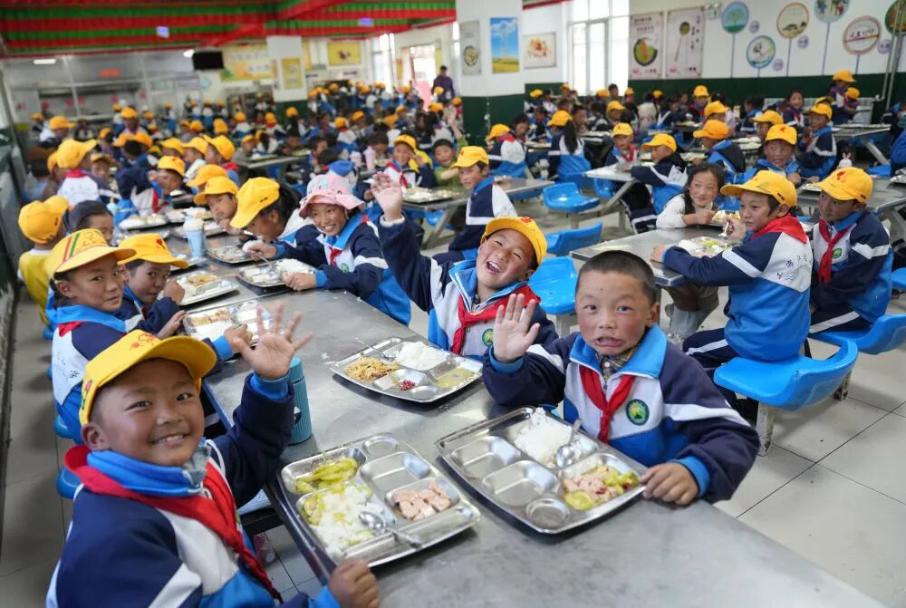 ▲2024年9月3日,西藏林芝市工布江达县娘蒲乡中心小学的学生们在享用午餐。(新华社记者 晋美多吉/摄)