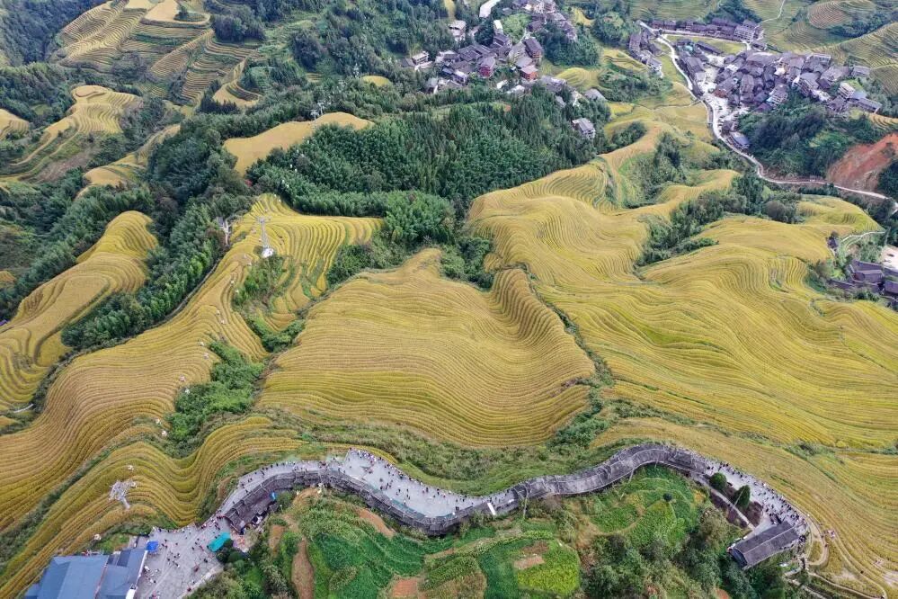 ▲广西桂林市龙胜各族自治县龙脊镇秋日的梯田风景。(新华社记者 陆波岸/摄)